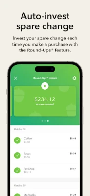 Your money is automatically invested into one of our diversified, ETF portfolios, built by experts and recommended for you. You can invest spare change each time you make a purchase with the Round-Ups® feature or set up automated recurring investments starting as low as $5.