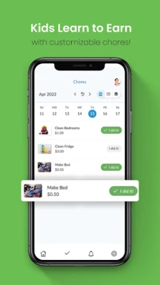Kids can earn an allowance by doing chores based on age and schedule. There are hundreds of chore/allowance combinations available but a parent can also add their own. In addition, the app’s chores and allowance tracker helps kids build important character traits like accountability, dependability, time management and teamwork. Enjoy our easy setup and real-time push notifications on chores and money transactions.