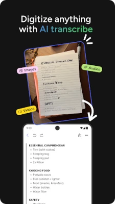 • Add different types of content to your notes: text, docs, PDFs, sketches, photos, audio, web clippings, and more.