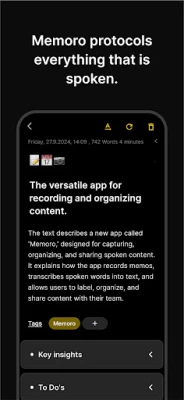 - Time saving: With Memoro you can efficiently manage your notes and recordings, so you have more time for the really important things in life.