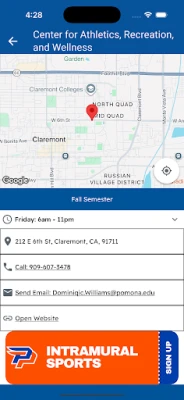 Pomona-Pitzer students/ faculty/ staff and members can now get all recreation and athletic information at their fingertips! Stay active by using the app to register for fitness classes, IM Sports, and much more. Stay current on the latest Campus Recreation news and announcements with instant alerts and push notifications.