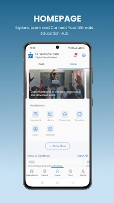 Here you can: - View your attendance - Check fee payments and dues - Request books from the library - Watch educational videos - Track homework and assignments - And much more!